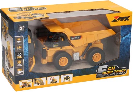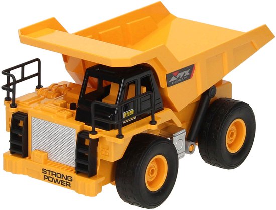 RC Constructietruck met Kiepwagen. De truck heeft een bereik van 15 meter is zowel de beweging als de kiepfunctie is op afstand bestuurbaar. De kiepwagen is ca. 19 centimeter groot (schaal 1:24) en te bedienen met de meegeleverde controller. Geschikt voor kinderen van 3 jaar en ouder. Kiepwagen werkt op de bijgeleverde accu, in de controller moeten 2 AA batterijen (niet inbegrepen).