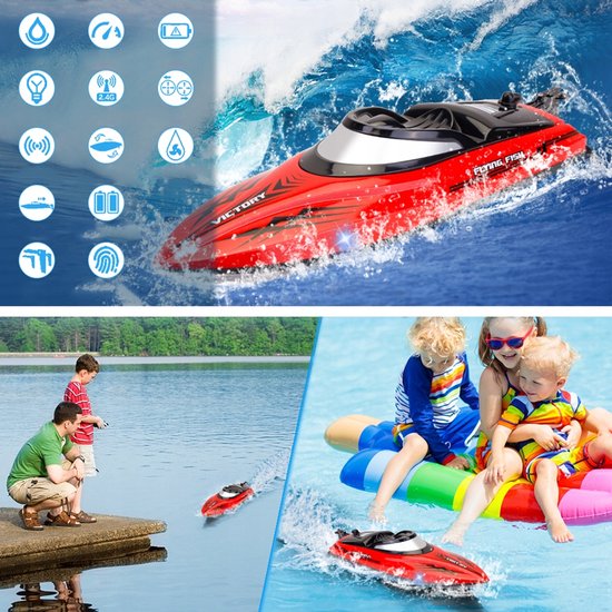 Wordt geleverd met twee 7,4 V 700 mAh lithiumbatterijen met hoge capaciteit. Elke batterij biedt 17-20 minuten speeltijd en door ze afwisselend te gebruiken, heb je in totaal meer dan 30 minuten speeltijd. Zeg vaarwel tegen frequente oplaadonderbrekingen en verdubbel het plezier tijdens het spelen op het water in de zomer.