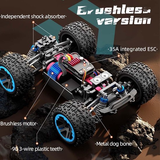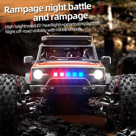 - Geavanceerde besturing: Dankzij de 2.4GHz afstandsbediening met volledige gashendel- en stuurcontrole manoeuvreer je de buggy nauwkeurig over elk terrein, inclusief scherpe bochten en obstakels.