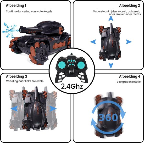Deze op afstand bestuurbare waterbomauto is het perfecte cadeau voor jongens vanaf 6 jaar, of het nu voor Kerstmis, een verjaardag of gewoon als een leuke verrassing is. Het stimuleert rollenspel, motorische vaardigheden en creativiteit en zorgt voor urenlang speelplezier. Geschikt voor singleplayer of multiplayer-gevechten met vrienden en familie. Geef niet alleen speelgoed, maar een onvergetelijk avontuur!
