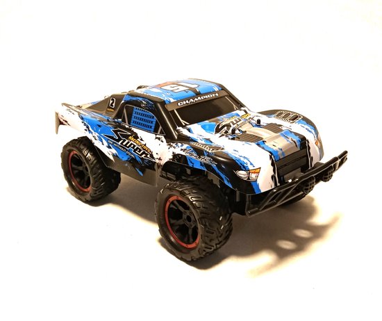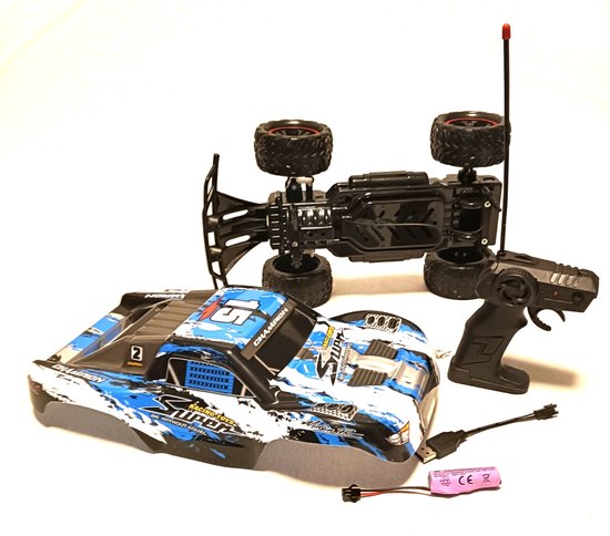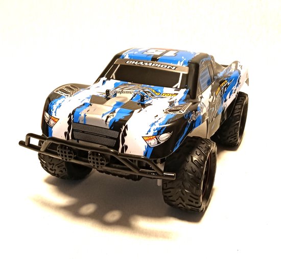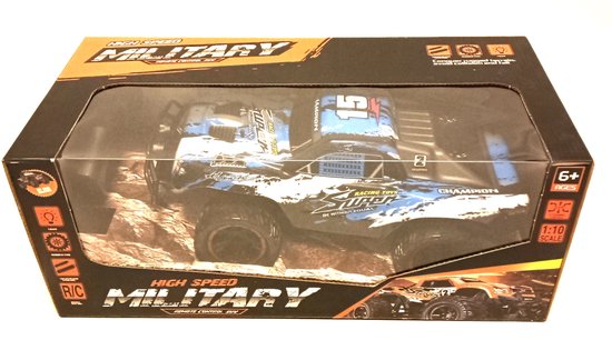 Deze high-speed RC-truck is speciaal ontworpen voor ruig terrein. Dankzij de vering aan de voorzijde en de antislip rubberen banden heeft de auto uitstekende grip op verschillende ondergronden. De off-road monstertruck is bovendien uitgerust met LED-verlichting en een oplaadbare batterij die eenvoudig via USB kan worden opgeladen.