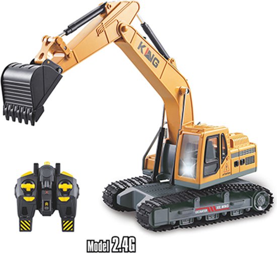 Handig en veilig: onafhankelijk stabiel signaal 2,4 Ghz, 5-functie excavator. Accessoires: 1 afstandsbediening, 1 oplaadbare batterij, 1 oplaadkabel. Vereist 3 AA R/C-batterijen (niet inbegrepen).