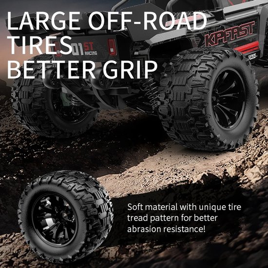 De 4WD aandrijving en responsieve 2.4G afstandsbediening zorgen voor optimale controle en stabiliteit. Het robuuste en compacte ontwerp maakt de auto duurzaam en geschikt voor intensief gebruik, ideaal voor kinderen en RC-liefhebbers die een realistische race-ervaring willen beleven.