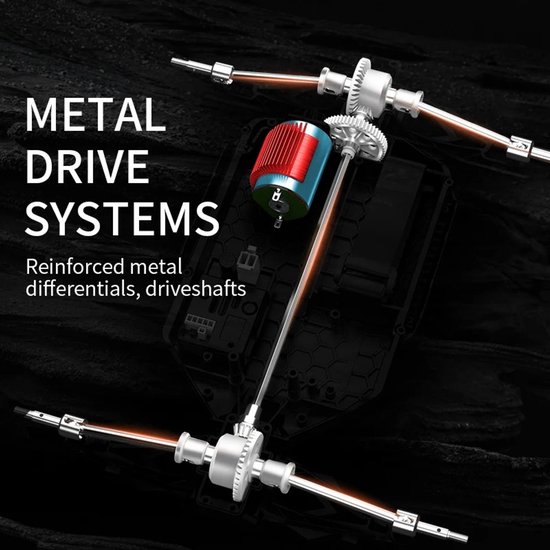 Beleef urenlang plezier met deze krachtige en veelzijdige zwarte RC auto, perfect voor high-speed drift- en off-road races. Bestel nu en geniet van een realistische RC-ervaring!