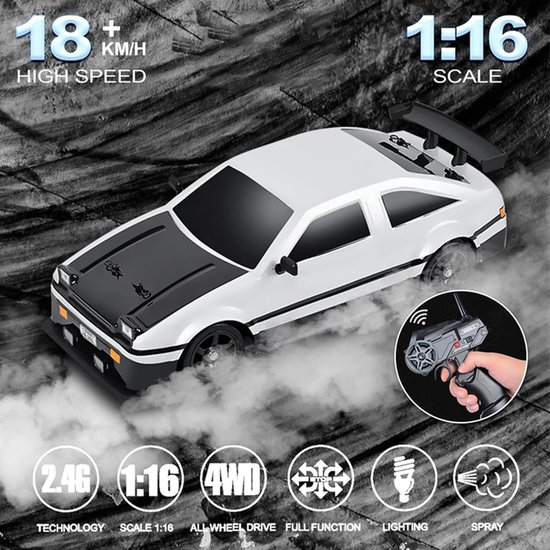 RC Drift Auto - Op afstand bestuurbare auto - Drift en race - LED verlichting sproeifunctie - 1:16 schaal