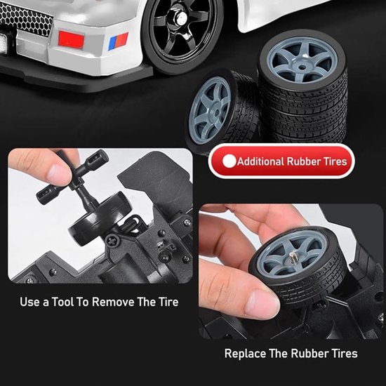 Ervaar de ultieme drift sensatie met deze indrukwekkende op afstand bestuurbare auto die garant staat voor urenlang speelplezier. Deze RC drift auto is ontworpen voor zowel beginnende als ervaren bestuurders die op zoek zijn naar een dynamische rijervaring. Herken je dat verlangen naar een RC auto die meer kan dan alleen rechtuit rijden? Een auto die de spanning van echte driftracers nabootst en je de controle geeft om spectaculaire manoeuvres uit te voeren? Deze auto is speciaal ontwikkeld om aan die behoefte te voldoen, waardoor je de uitdaging aangaat om de controle te behouden tijdens snelle bochten en gecontroleerde slides. Deze veelzijdige RC auto is perfect voor gebruik zowel binnen als buiten. Creëer je eigen racecircuit in de woonkamer, daag vrienden uit in de tuin, of ontdek nieuwe driftmogelijkheden op een vlakke ondergrond zoals een oprit of een lege parkeerplaats. De meegeleverde sproeifunctie voegt een extra dimensie toe aan het driften, waardoor het lijkt alsof je een echte raceauto bestuurt met rook die uit de banden komt. De levendige LED-verlichting zorgt ervoor dat je ook in de schemering of donkere ruimtes volop kunt genieten van het rijden en de auto goed zichtbaar blijft. Wat deze auto zo speciaal maakt, is de combinatie van snelheid, wendbaarheid en realistische driftmogelijkheden. Geniet van de vrijheid om te sturen en te driften met een indrukwekkende snelheid van 18 km/u. De 4WD aandrijving zorgt voor optimale grip en stabiliteit, zelfs tijdens de meest uitdagende drifts. De meegeleverde extra set rubberen banden biedt je de mogelijkheid om de grip aan te passen aan verschillende ondergronden en je drifttechniek te perfectioneren. Het opladen van de krachtige Li-ion accu gaat snel via de USB-kabel, zodat je minder lang hoeft te wachten en langer kunt spelen. Het rijden met deze auto biedt niet alleen entertainment, maar stimuleert ook de fijne motoriek, reactiesnelheid en strategisch denken. Een uniek kenmerk van deze RC drift auto is de geïntegreerde sproeifunctie, die een realistische rook-effect creëert tijdens het driften, wat de race-ervaring naar een hoger niveau tilt. In combinatie met de scherpe LED-verlichting is dit een auto die gegarandeerd de aandacht trekt en zorgt voor een spectaculaire show, zowel overdag als 's avonds. De 4WD aandrijving zorgt voor een superieure tractie en controle, essentieel voor precisie driften. Wacht niet langer en bestel deze fantastische RC drift auto vandaag nog om je eigen driftkampioenschap te starten en indruk te maken op iedereen met je spectaculaire rijkunsten!
