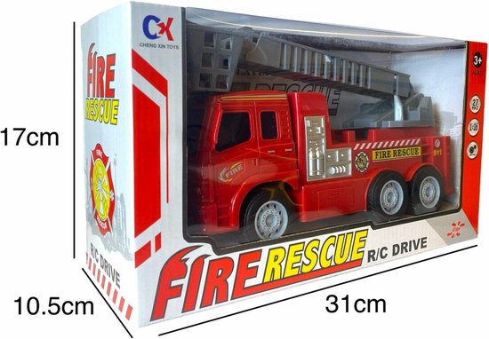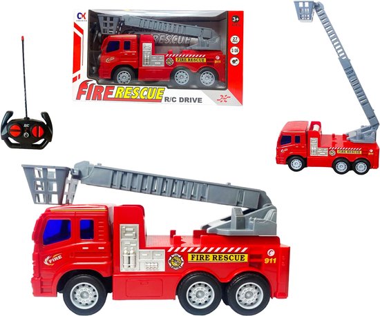 Afstand bestuurbare brandweerwagen in schaal 1:16 met een ladderwagen. Het beste gedeelte is echter de draaibare ladder kan 360° graden worden gedraaid en kan daardoor zelfs de meest gecompliceerde missies aan. Met de 27mhz radiografische afstandsbediening heb je een echt commandocentrum in je hand. Dit brandweer voertuig zal elke kleine brandweerman inspireren.