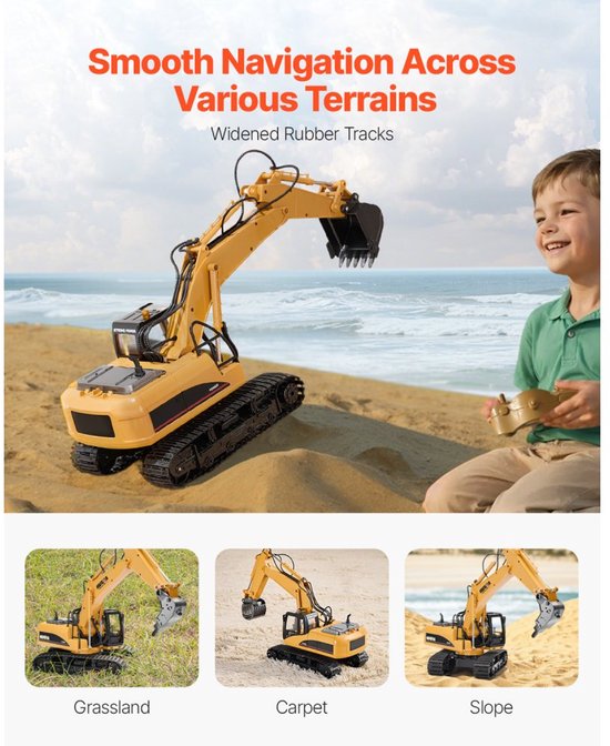Maak kennis met een krachtige RC-graafmachine op schaal 1:14 Deze realistische graafmachine combineert een metalen schep, houweel en klauw met sterke rubberen rupsbanden en een storingsvrije 2,4 GHz bediening. Met drie onafhankelijke motoren in de arm en een lange speeltijd is dit het ideale speelgoed voor binnen en buiten, boordevol detail en controle.