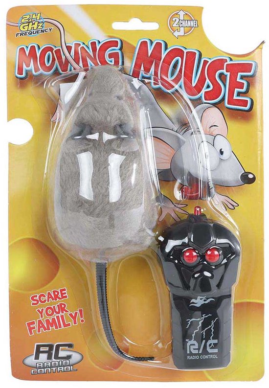 Op afstand bestuurbare nep muis, inclusief muis en afstandsbediening. Exclusief batterijen.Voor kinderen vanaf 4 jaar.