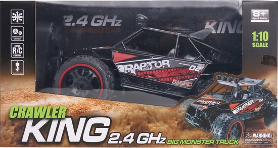 2,4 GHz 1:10 schaal telegeleide auto die tot 12 km/u op volle snelheid kan rijden voor gebruik binnen en buiten.
