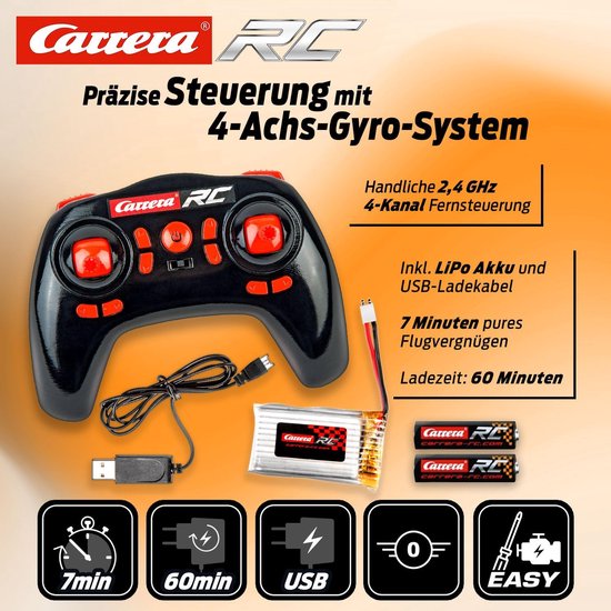 Dankzij de 2,4 GHz communicatie heb je een sterke, storingsvrije verbinding met een bereik dat ideaal is voor recreatief vliegen. De besturing is intuïtief en responsief — zelfs nieuwkomers kunnen al snel soepel manoeuvreren. -