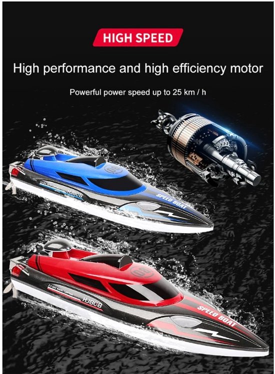 Wilde jij altijd zo een gave snelle race boot? Deze boot heeft een vrij stabiele uitvoering en is gemakkelijk te besturen voor zowel kinderen als volwassenen. Zodra het boot op het water kapseist, kan deze met automatisch 180 ° flip funciton weer recht op het water krijgen. Deze functie controleren en zorgen voor een correcte vaarervaring. High Speed boot heeft een snelheid tot wel 20 km/u, en is hierdoor 3 keer sneller dan andere gewone RC boten!