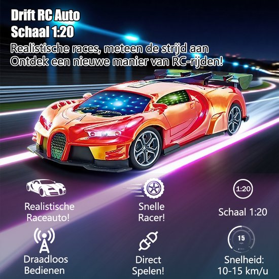 RC Racing Auto - Speelgoed Auto met 3D LED-Verlichting - 1:20 Simulatie - Draadloze Afstandsbediening - Hoge Snelheid - Binnen & Buiten Gebruik - Voor Kinderen - Rood