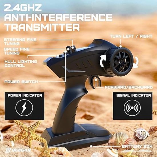 Deze RC speedboot is ontworpen voor kinderen die houden van snelheid en actie op het water. Met een maximale snelheid tot 25 km/u en een 2.4GHz afstandsbediening biedt de boot stabiele besturing zonder storingen van andere boten.