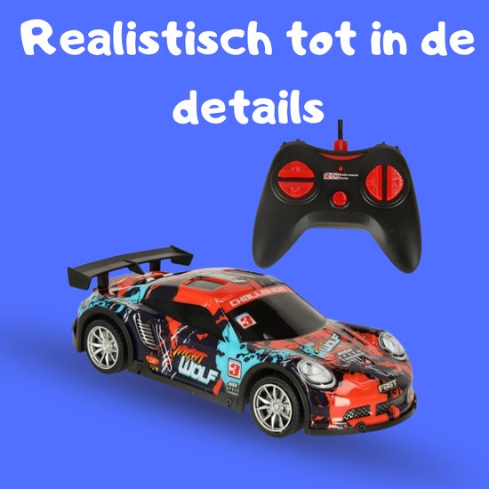 RC Sportauto op Afstand – Bestuurbare Auto - 3,7V Oplaadbare Racewagen met Lichteffecten, Rubberbanden & Controller – Geschikt voor Binnen & Buiten – Speelgoedauto Kinderen 6+