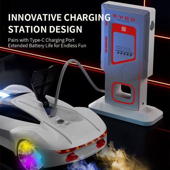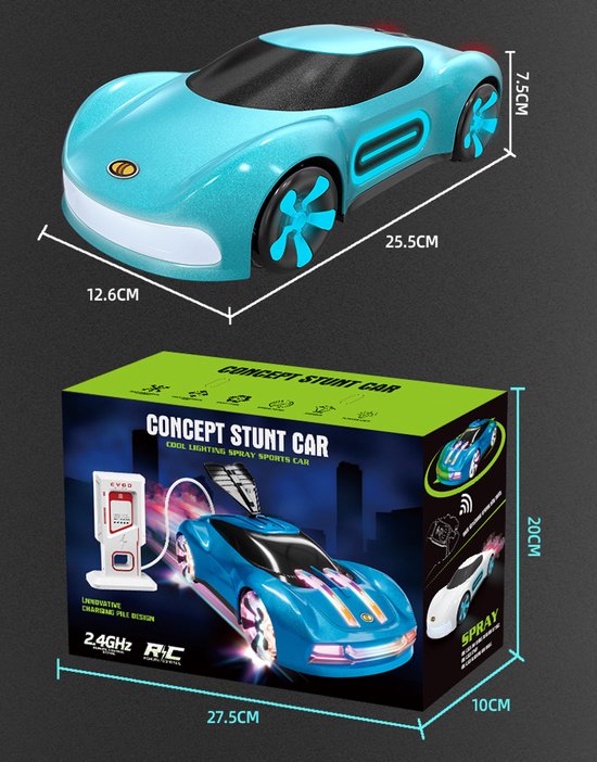 Deze coole RC stunt auto zorgt voor ultiem speelplezier met licht, geluid en uniek rookeffect. Kinderen kunnen spectaculaire 360° stunts en driftbewegingen uitvoeren, terwijl de LED verlichting en muziek zorgen voor een extra gave beleving. Perfect voor kinderen die houden van snelheid, actie en opvallend speelgoed.