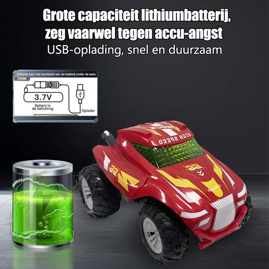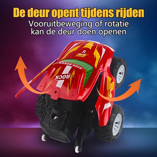 Draai, Flip, Sta Op! Dankzij het geavanceerde ontwerp voert deze auto moeiteloos vloeiende 360° rotaties en razendsnelle spins uit.