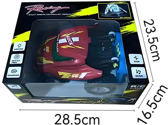 Bijzondere functies: Realistische water spray, 360° stunts, monowiel rijden, 5 muzieknummers, RGB-verlichting, schokdemping, grote offroad banden.