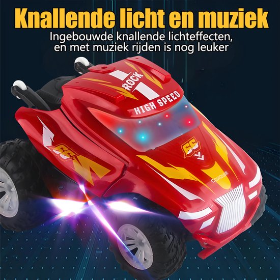 Draai, Flip, Sta Op! Dankzij het geavanceerde ontwerp voert deze auto moeiteloos vloeiende 360° rotaties en razendsnelle spins uit.