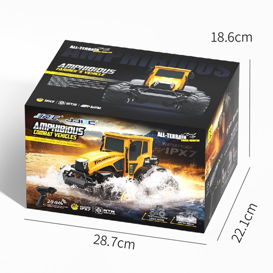 Deze krachtige RC tractor biedt een unieke speelervaring op zowel land als water. Dankzij het robuuste amfibie ontwerp en de sterke 4x4 aandrijving rijdt deze tractor moeiteloos over modder, zand, gras en zelfs door water. Perfect voor kinderen die houden van avontuur en actie, zowel binnen als buiten.