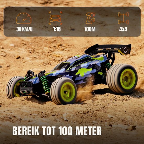Met een topsnelheid van 30 km/u voel je direct de adrenaline bij elke rit. De 1:18 schaal RC auto reageert scherp en nauwkeurig dankzij de sterke afstandsbediening met een bereik tot 100 meter. Hierdoor kun je vrij rijden zonder beperkingen en echt genieten van volledige controle. Elke bocht, sprong en drift voelt realistisch en intens.