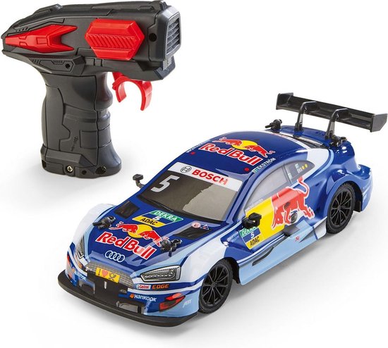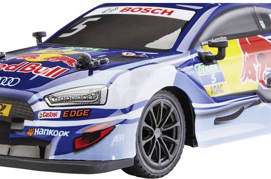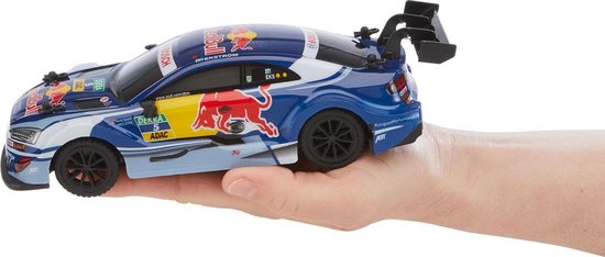 Bestuur jouw eigen Audi RS5 racewagen van M. Ekström. De sportauto is een replica van het echte voertuig en gemaakt op een schaal van 1:24. Met de afstandsbediening bepaal jij welke kant de auto op gaat en met welke snelheid. De auto werkt op drie AA-batterijen (niet inbegrepen) en de afstandsbediening werkt op twee AA-batterijen (niet inbegrepen). Hij heeft een mooie topsnelheid en is daarna niet meer te stoppen. De bouw en banden zorgen vervolgens voor de juiste wegligging. Ideaal om binnen of buiten mee te racen!