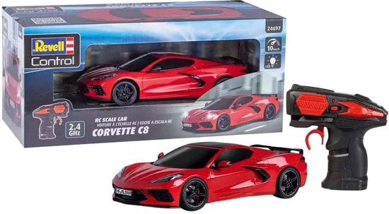 Stap in de wereld van snelheid en stijl met de 1:24 Revell 24697 RC Corvette C8 – Rood. Deze krachtige sportwagen in miniatuurformaat combineert iconisch design met spannende RC-prestaties. Dankzij de gedetailleerde afwerking, LED-verlichting en soepele bediening via de 2,4 GHz afstandsbediening ervaar je de opwinding van een echte Corvette, waar en wanneer je maar wilt. Of je nu binnen rijdt of buiten de straat opzoekt – deze ready-to-run RC auto laat je gegarandeerd genieten.