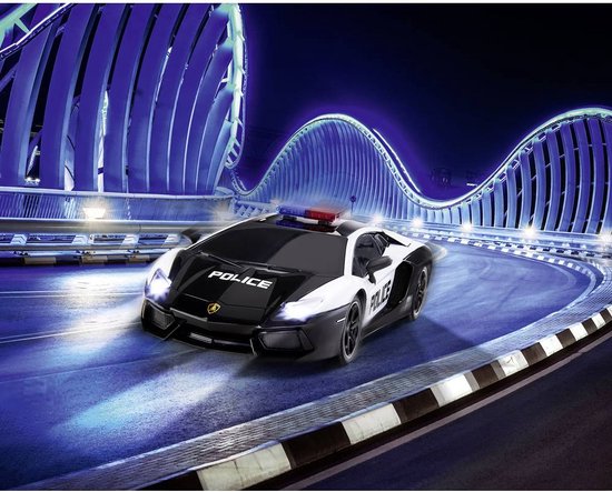 De gedetailleerde Lamborghini Aventador in politiedesign trekt direct de aandacht met zijn realistische look en krachtige prestaties. Met een topsnelheid van 10 km/u, gripvaste banden en LED-koplampen kun je zelfs in het donker criminelen opsporen en arresteren. Dankzij de 2.4 GHz radiotechnologie bestuur je het voertuig zonder storingen, en zelfs meerdere RC-modellen tegelijk – perfect voor races met vrienden.