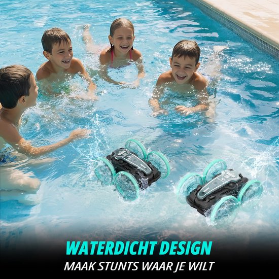 Dankzij de IPX7-waterdichtheid en 4WD-aandrijving rijdt deze bestuurbare auto probleemloos over zand, gras, modder, rotsen en zelfs door plassen. De anti-slip propellerwielen zorgen voor uitstekende grip, ook bij scherpe bochten of sprongen.