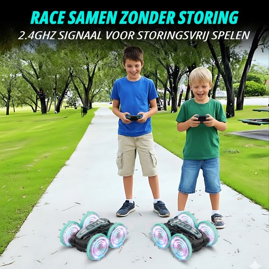 De Revvix RC bestuurbare auto combineert kracht, technologie en rijplezier in één opvallend ontwerp. Deze waterdichte offroad stuntwagen beschikt over dubbele bediening, twee accu’s en LED-verlichte wielen. Geschikt voor kinderen, tieners en volwassenen die houden van snelheid en avontuur op elk terrein.