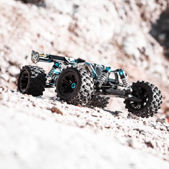 Ontdek de perfecte 1:8 offroad RC buggy met een hoogwaardig aluminium chassis, ontworpen om zelfs de zwaarste botsingen te weerstaan. Geniet van rijplezier op modderige tracks met waterdichte RC-onderdelen. Deze krachtige buggy met een gewicht van net geen 3,5 kg bereikt snelheden tot 80 km/u dankzij de geavanceerde borstelloze motor. De 2,4 GHz afstandsbediening biedt een betrouwbare controle en is inbegrepen bij de set. Met een laag zwaartepunt en talrijke setup-opties biedt deze buggy een uitstekende grip voor avontuurlijke ritten op elk circuit. Perfect voor echte liefhebbers van offroad rijden!