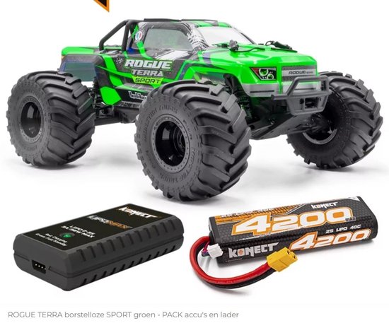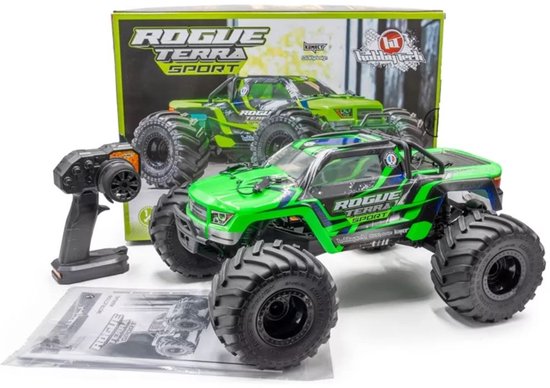 De Rogue Terra Sport is een monstertruck met een borstelloze motor en vierwielaandrijving. Ideaal voor beginners in de modelbouw. Hij is uitgerust met een KT3X-radio waarmee de maximumsnelheid kan worden aangepast aan alle leeftijden en niveaus. De Rogue Terra Sport is ontwikkeld om overal te kunnen rijden – hij past zich aan elk terrein aan, waardoor het een uiterst veelzijdige auto is.