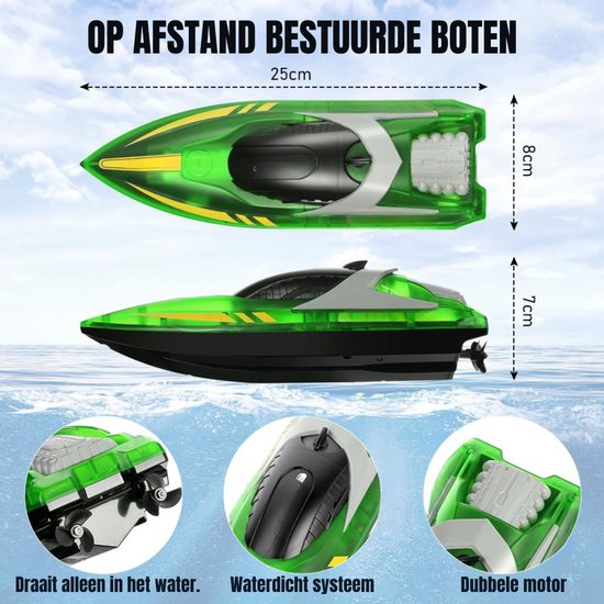 Wacht niet langer en beleef zelf de kracht van deze bestuurbare boot groen met hoge snelheid, stabiele controle en langdurig speelplezier. Voeg nu het product toe aan je winkelmand en profiteer vandaag nog van een exclusieve korting – dit avontuur wil je niet missen!