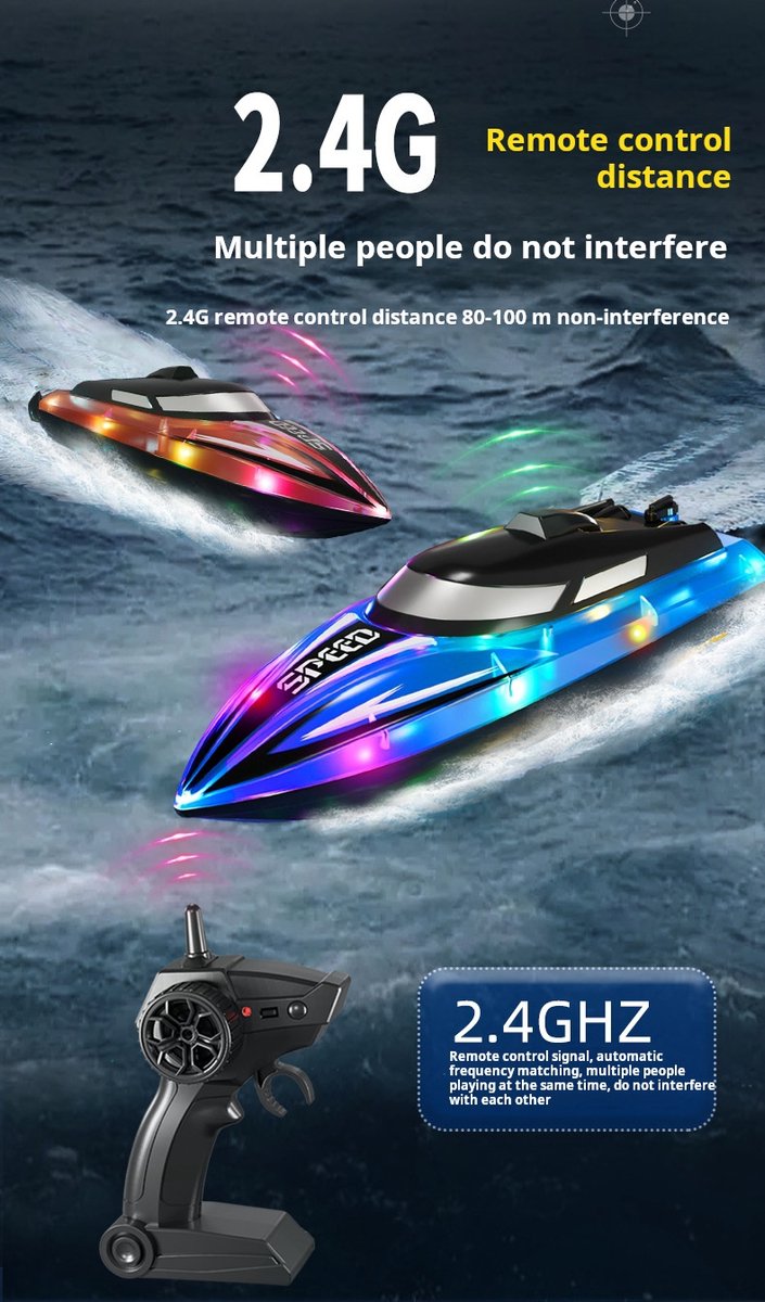 2,4 GHz-afstandsbediening voor racen: aangezien de 2,4 GHz-afstandsbediening uitstekende anti-interferentie biedt, zul je een geweldige race-ervaring hebben. Bovendien heeft de 2,4 GHz-afstandsbediening een langere en sterkere signaaloverdracht, waardoor de boot snel reageert op uw acties!
