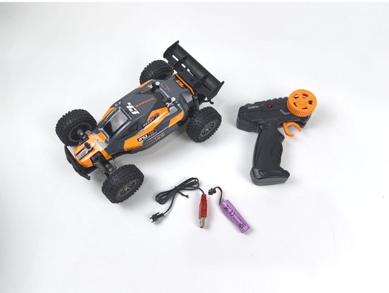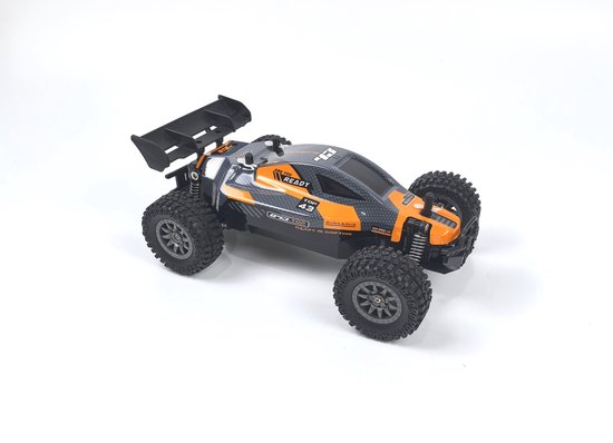 DF Models 3147 Rookie Fighter Buggy - Ready to Run DF Models 2025.De DF Models Rookie Fighter Buggy Ready to Run (RTR) is een indrukwekkende buggy met spijkerbanden op schaal 1:18. Met zijn metallic gelakte carrosserie is dit model een echte blikvanger! Dankzij de meegeleverde Li-Ion-accu kun je meer dan 15 minuten ononderbroken rijplezier beleven, afhankelijk van de rijstijl en het terrein waarop je rijdt. Met de 2,4 GHz-afstandsbediening kun je meerdere modellen tegelijkertijd bedienen zonder storing. Gewoon uitpakken, de accu opladen, de batterijen (niet meegeleverd) in de zender plaatsen en het avontuur met de RC-auto op parkeerplaatsen en paden kan beginnen! Dit model is de ideale introductie tot RC-modelbouw en is perfect voor bestuurders van 6 jaar en ouder. Trakteer jezelf en je kinderen op een onvergetelijke RC-ervaring met de Rookie Fighter Buggy!Inhoud:RC-buggy Ready to Run (RTR)2,4 GHz-afstandsbedieningLi-Ion-aandrijfaccu - 3,7 Volt - 500 mAhUSB-oplaadkabelHandleidingTechnische gegevens:Schaal: 1:18Aandrijving: 2WD geborsteldLengte: 225 mmBreedte: 150 mmHoogte: 95 mmWielbasis: 155 mmBenodigde accessoires:2x AA-batterijenUSB-stekkervoeding (min. 10 watt)