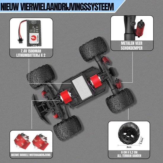 Of het nu voor een verjaardag, feestdag of zomaar is, deze 4WD monstertruck is een gegarandeerd succes. Het combineert snelheid, kracht en wendbaarheid in één pakket dat zowel kinderen als volwassenen enthousiast maakt. Geef een cadeau dat actie, plezier en uitdaging brengt, en zie de ogen van je geliefden oplichten van opwinding.