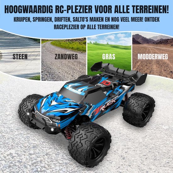 Dankzij de robuuste constructie en krachtige motor biedt de RC Auto Offroad Blauw urenlang speelplezier. Geen gedoe met stilvallende voertuigen of vastlopende wielen: elke rit is spannend en vloeiend. Perfect voor jongens vanaf 8 jaar, maar ook uitdagend genoeg voor volwassenen die van offroad-avontuur houden. Met deze auto is elk terrein een nieuwe uitdaging en elk parcours een nieuwe overwinning.