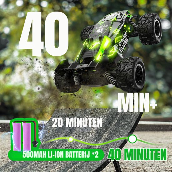 Ben je het zat dat RC-auto’s snel leeg zijn of niet genoeg avontuur bieden? Met de RC Auto Offroad Groen ervaar je extreme snelheid, robuustheid en ononderbroken speeltijd tot wel 40 minuten dankzij de 2 meegeleverde oplaadbare batterijen. Deze monstertruck biedt all-terrain plezier, waardoor elk parcours een spannend avontuur wordt en kinderen én volwassenen blijven lachen en ontdekken.