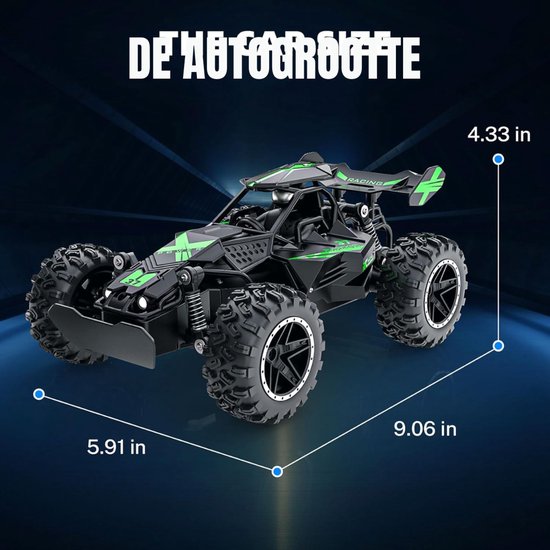 Het groene en zwarte design valt direct op en maakt dit voertuig tot een geweldig cadeau. Of het nu voor een verjaardag, feestdag of gewoon een verrassing is, deze RC auto truggy zorgt voor urenlang speelplezier en spannende races. Dit is speelgoed dat indruk maakt en herinneringen creëert.