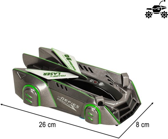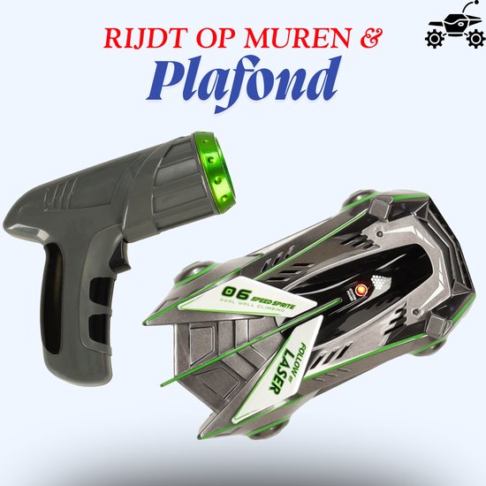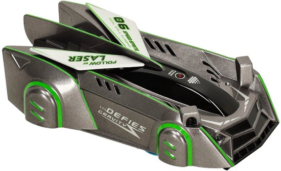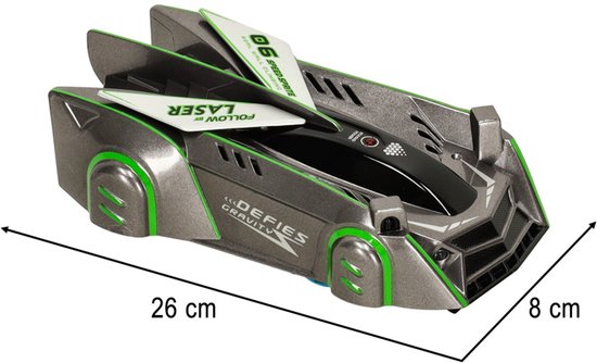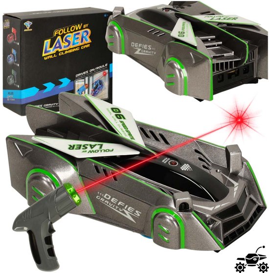 Deze unieke op afstand bestuurbare auto kan rijden op de vloer, muren én zelfs het plafond — alsof hij de zwaartekracht trotseert! Met behulp van een speciale laserbesturing bepaal jij exact de richting waarin de auto rijdt. Richt de laser tot 33 cm voor het voertuig en zie hoe het soepel elke beweging volgt — een spectaculair staaltje techniek dat jong en oud versteld doet staan.