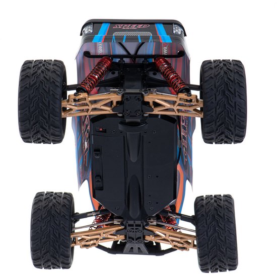 De 4x4-aandrijving en grote rubberen wielen zorgen voor maximale grip, zelfs op ruwe of ongelijke ondergronden. De metalen schokdempers en duurzame chassisconstructie garanderen langdurig rijplezier, zelfs bij intensief gebruik of botsingen.