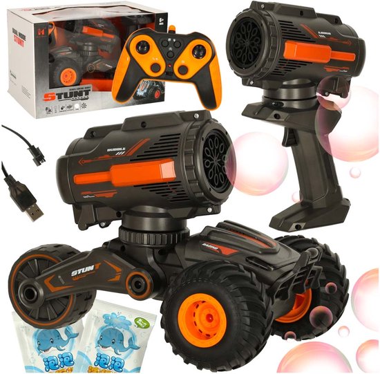 Laat het plezier letterlijk bubbelen met de SF RC Bubbelauto! Dit innovatieve op afstand bestuurbare model combineert snelheid, wendbaarheid en magie: bovenop de auto bevindt zich een bubbelmachine die vrolijke zeepbellen vrijgeeft tijdens het rijden.