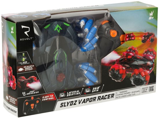 De SF Revolt Slydz Vapor Racer is niet zomaar een RC-auto – het is een mini-racebeest met rook, geluid en stunts in één! Perfect voor eindeloze actie en spektakel, zowel binnen als buiten.