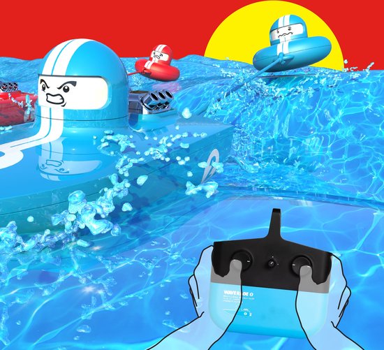 Bestuur de boot op afstand met de handige draadloze afstandsbediening. De afstandsbediening werkt op 4 AA-batterijen (exclusief), terwijl de boten zijn uitgerust met een oplaadbare 3,7 V 1300 mAH-batterij.