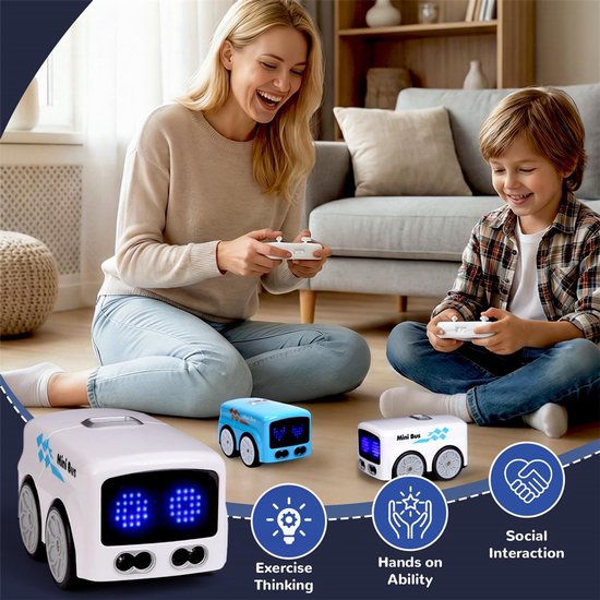 【Het perfecte cadeau】Deze automatische auto die lijnen volgt, stimuleert de oog-handcoördinatie en het inzicht in oorzaak en gevolg, en bevordert bovendien het ruimtelijk inzicht en de cognitieve vaardigheden. Deze slimme RC-mini-bus is het perfecte cadeau voor de feestdagen, een verjaardag of Kerstmis, voor zowel jongens als meisjes.