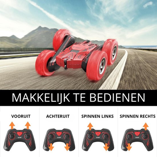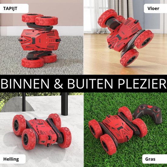 360° Stunts in Overvloed: Laat jouw kinderen zich onderdompelen in eindeloos speelplezier met de stuntwagen. Met de mogelijkheid tot 360° en 180° tuimelende salto's, rotaties op de grond en omkeerstunts, zorgt deze op afstand bestuurbare auto voor urenlang vermaak.