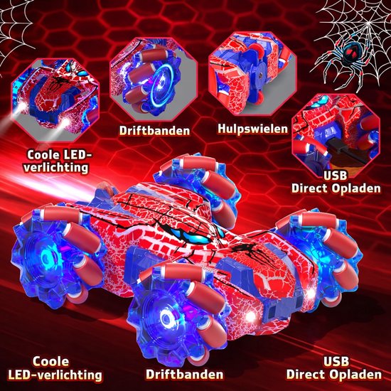 Laat kinderen de wereld van snelheid, technologie en spectaculaire stunts ontdekken met deze Spider RC Gesture Control Stunt Auto – bestel vandaag nog en beleef eindeloos raceplezier!