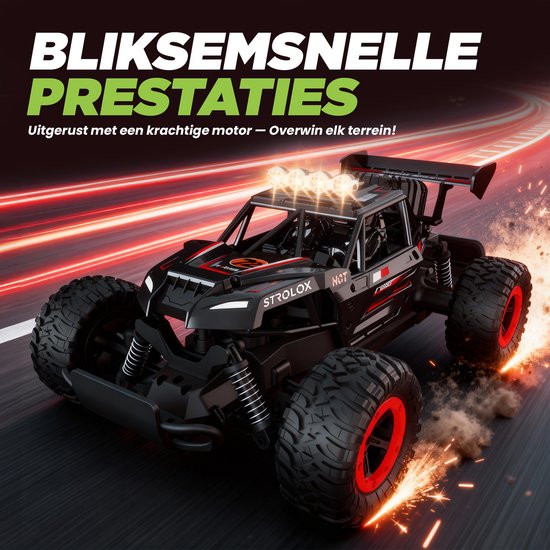 Ervaar het ultieme racegevoel met een razendsnelle RC-auto die elke ondergrond aankan. De krachtige motor zorgt voor explosieve acceleratie, stabiliteit en controle bij hoge snelheden.