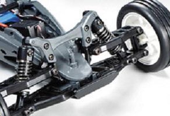 DT-03 stootvast kuipframe - voorbumper - dubbele draagarmen - onafhankelijke voor- en achterwielophanging - oliedrukschokdempers - differentiële tandwielen - polycarbonaat behuizing - 540 Torque Tuned elektromotor - TBLE-02S elektronische cruisecontrol - spijkerbanden achteraan - gegroefde banden vooraan.