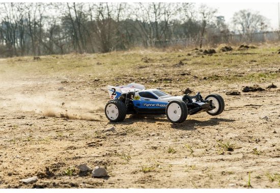 De Tamiya Neo Fighter Buggy is een volledig uitgeruste RC auto. Het is een zelfgebouwde set zonder zender en lader.